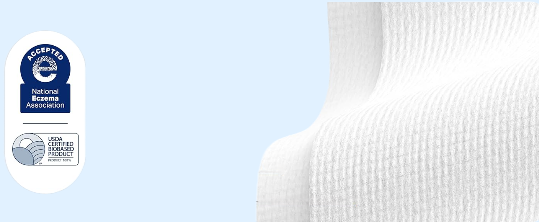 100% USDA Biobased ultra-soft face towels for sensitive skin—clinically proven to improve the skin barrier. Dual-texture for makeup removal, cleansing, and gentle exfoliation.